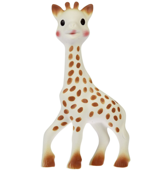 Her gentle squeaking sound introduces babies to cause and effect while keeping them entertained and engaged. Made exclusively from natural rubber and food-grade paint, every part of Sophie—from her ears and horns to her long legs—is completely safe for soothing tender gums during teething.