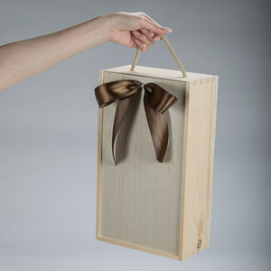 WOODEN BOX- Elegant wine wooden gift box wrapped in cellopane and tied with a handmade bow for a classy gift.